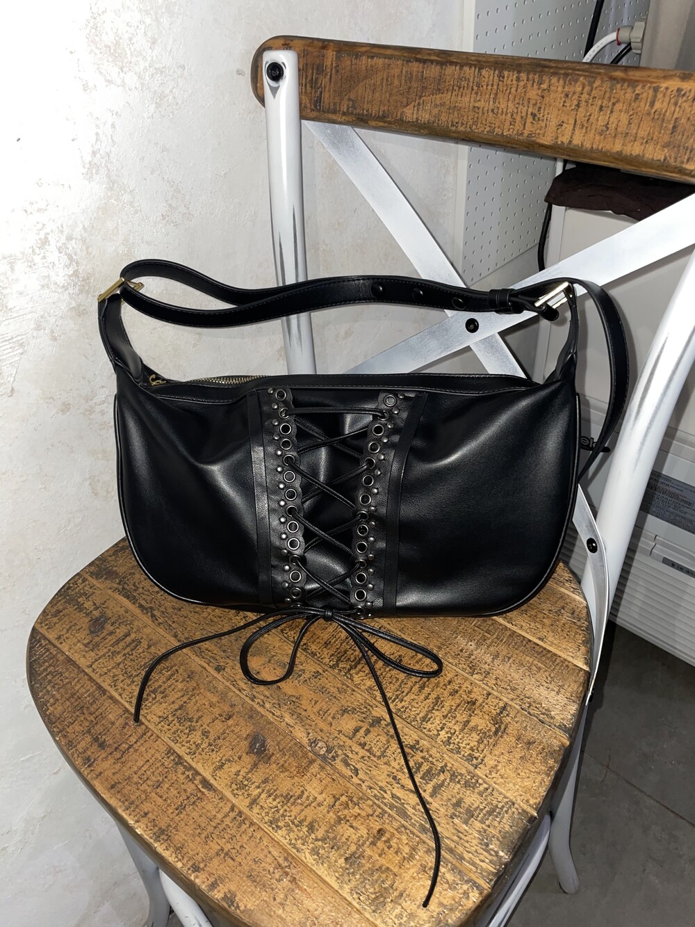 코르셋 디테일에 착안한 데일리 숄더백입니다.