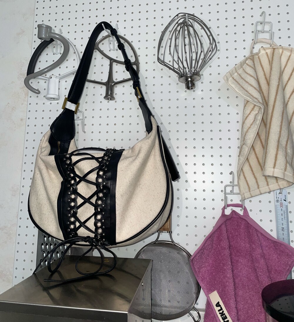 코르셋 디테일에 착안한 데일리 숄더백입니다.